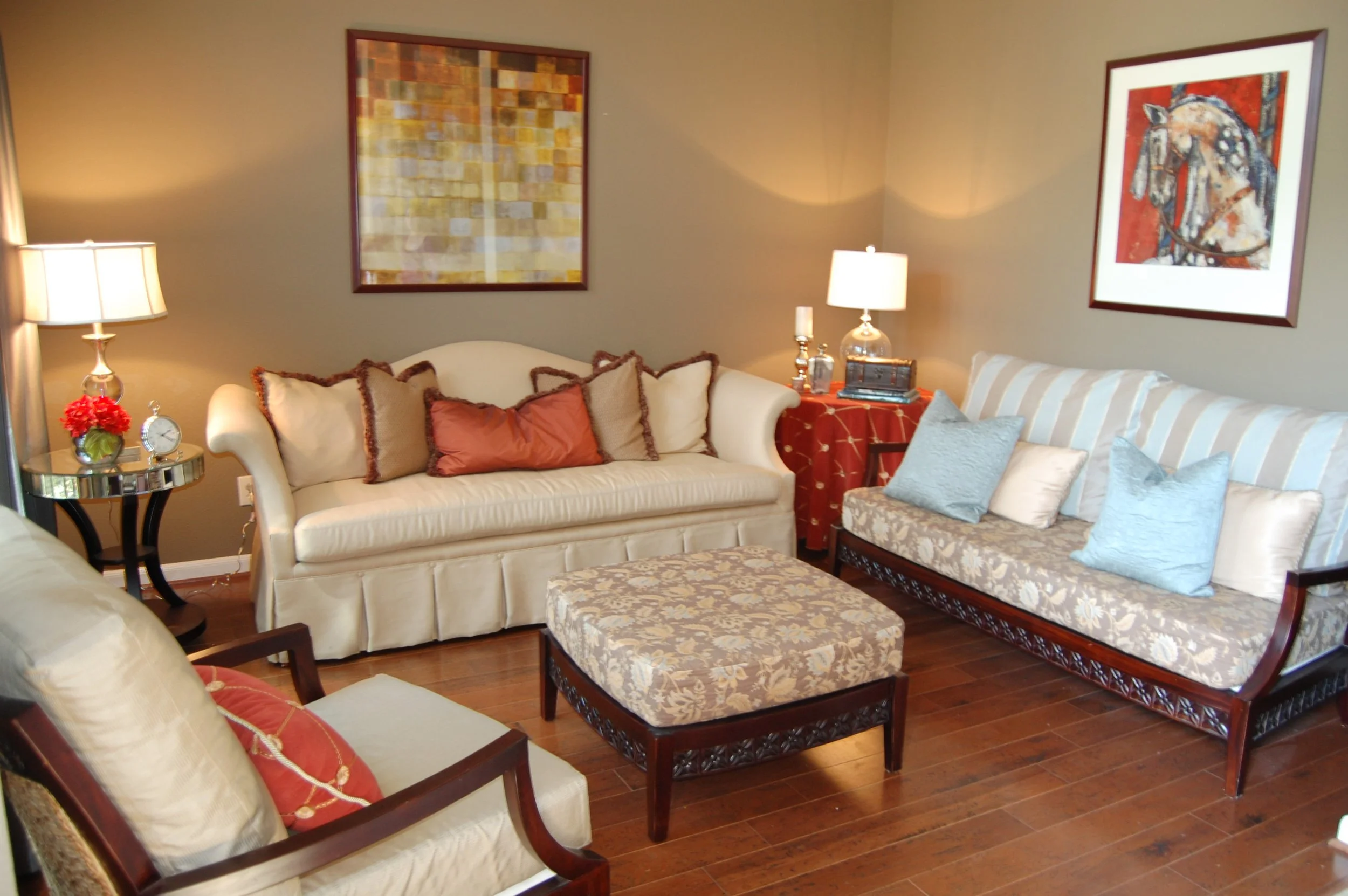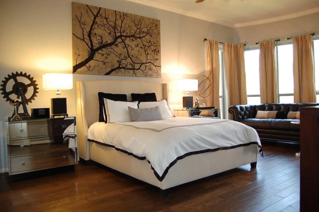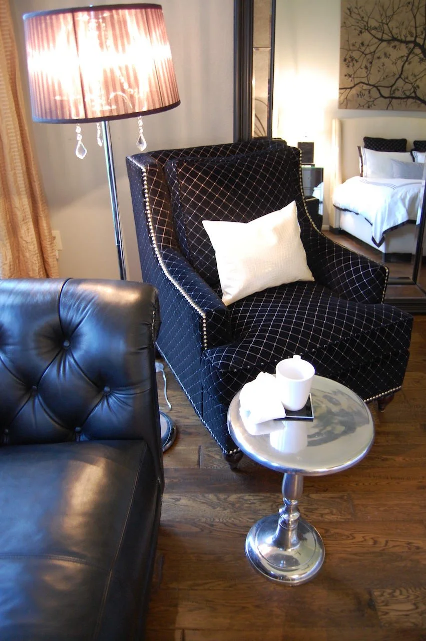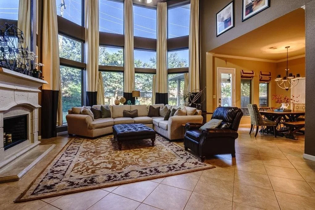 Buying a new build home can be great but also overwhelming, designing from a blank space. For this Houston family, we designed elegant, warm interiors with some custom touches to meet their traditional aesthetic in the formal living room, dining room, and family room. For a personal touch, the owners requested a touch of Hollywood Regency styling in their primary bedroom. A color palette of black, white, and gold, along with mirrored finishes, and velvet and leather fabrics helped us achieve their personal retreat.